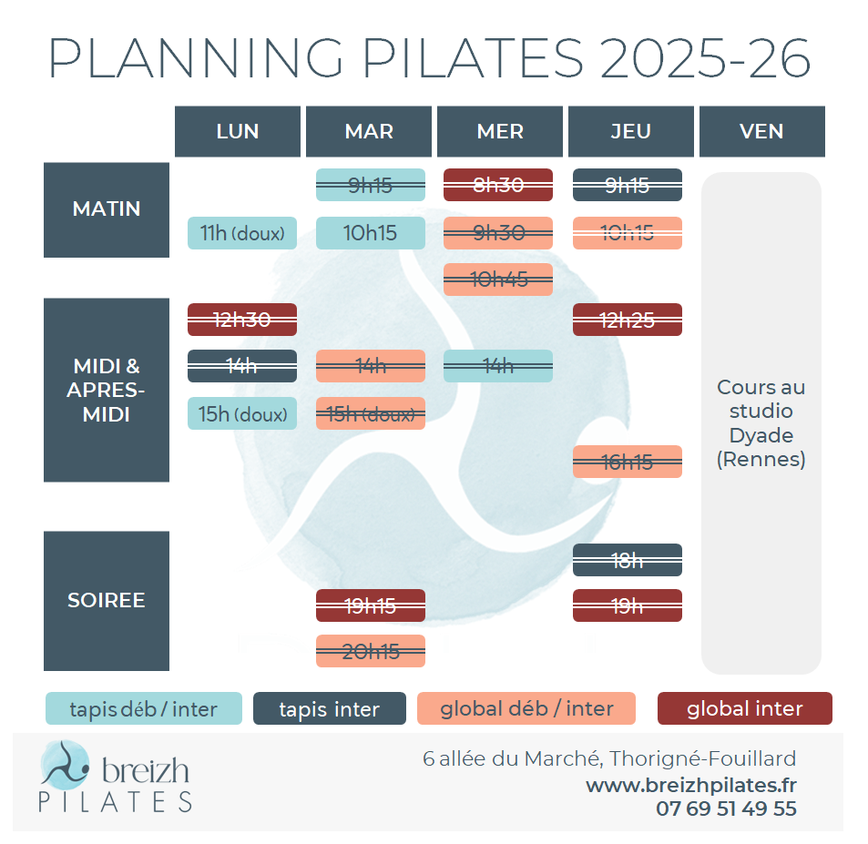 Les créneaux horaires barrés affichent déjà complets ! Il reste quelques places pour vous positionner sur les autres créneaux. Pour réserver un cours d’essai, vous pouvez me contacter au 07 69 51 49 55. Vous pouvez également suivre mes actualités en vous abonnant à ma page Facebook.